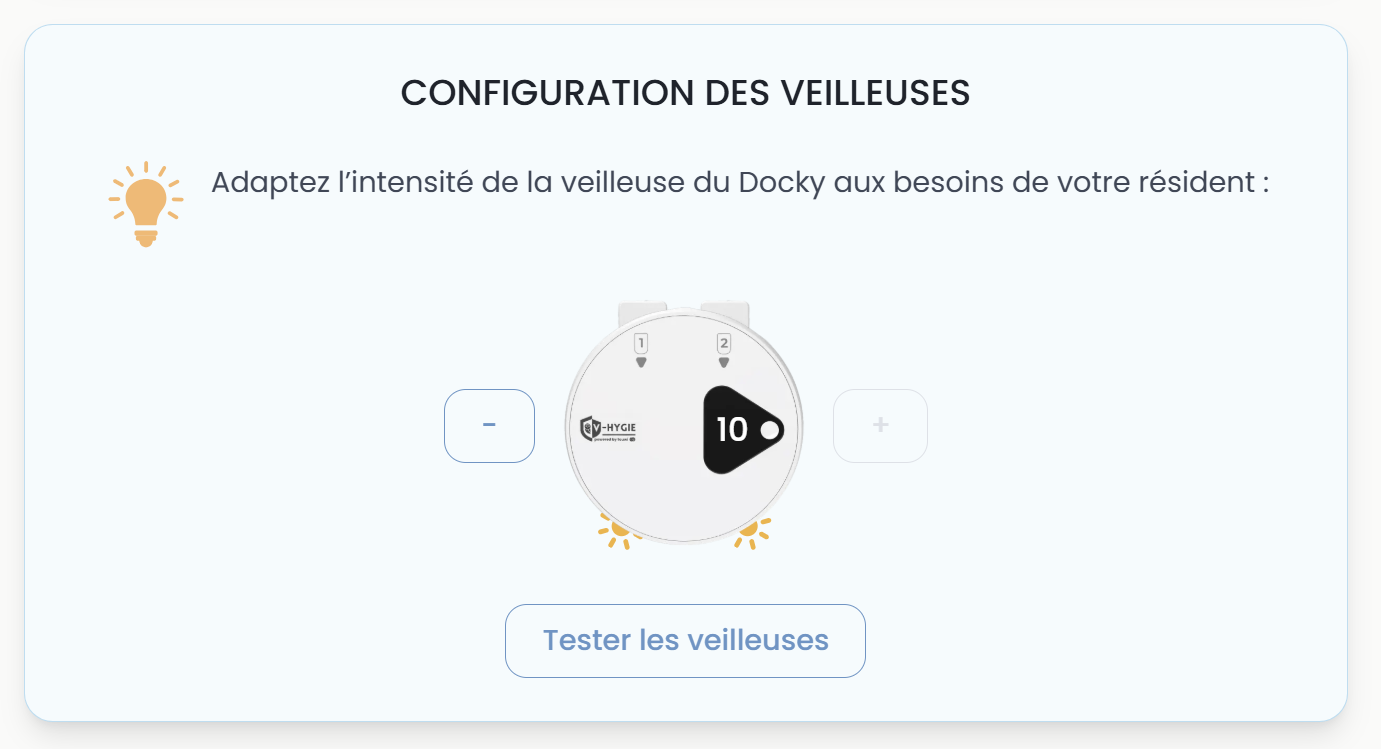 💡 Recommandé pour les résidents avec troubles neurocognitifs : désactiver les alertes lumineuses et audio pour éviter tout sentiment de panique.