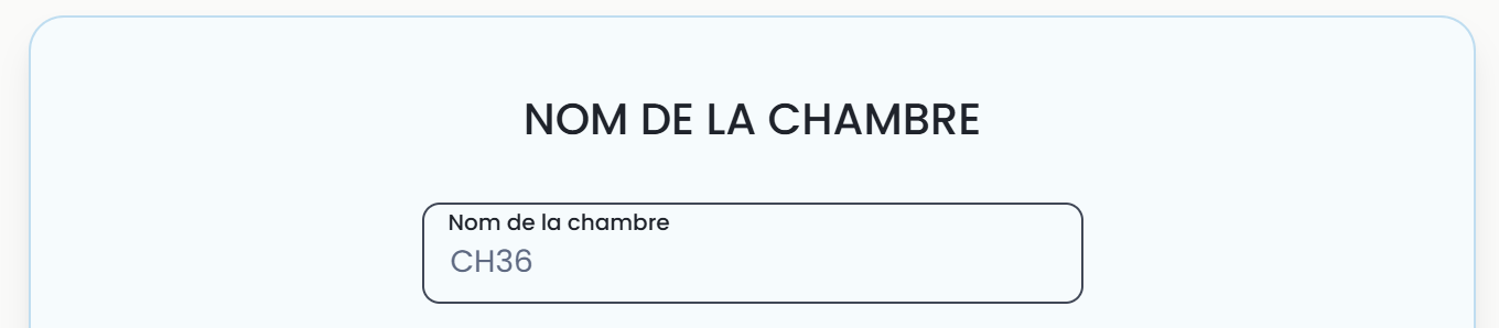 💡 Pour des raisons RGPD, il est recommandé de ne pas inscrire le nom du résident dans le champ Nom de la chambre — préférer un identifiant neutre comme un numéro de chambre (ex. CH36).